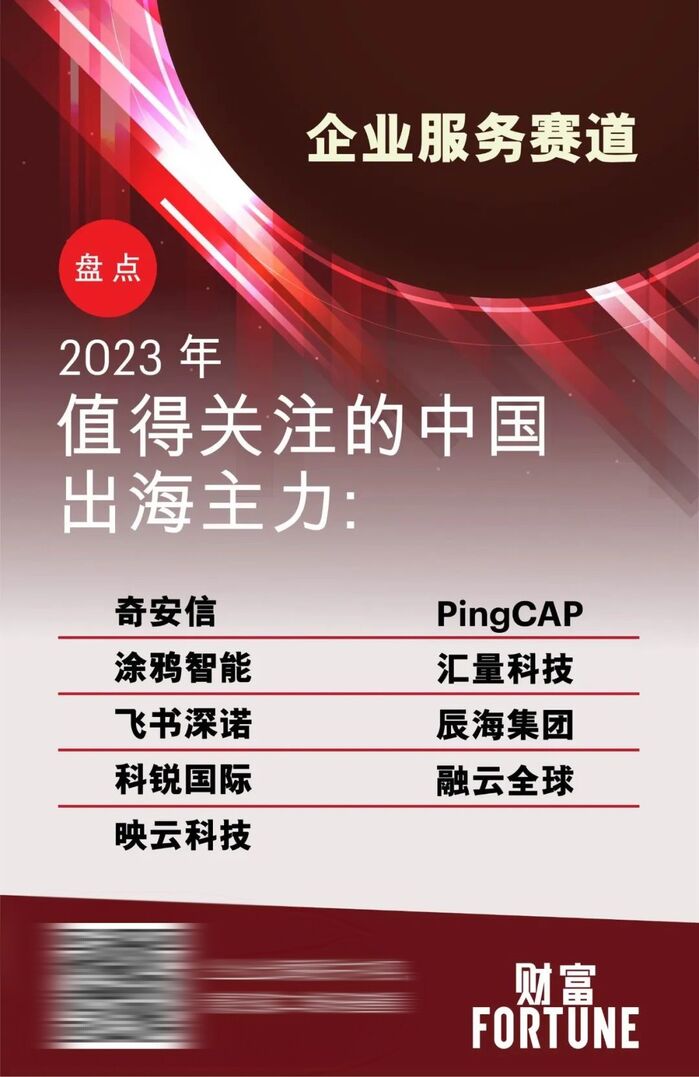 伴随着中国企业出海步伐的加快,企业级服务将成为更加热门的赛道。比如,出货量全球排名第一的IoT PaaS供应商涂鸦智能在全球超200个国家和地区拥有超64.7万开发者;汇量科技、飞书深诺提供出海营销服务;辰海集团提供全球合规服务;科锐国际提供人力资源及相关SaaS服务;映云科技提供开源物联网基础软件服务,等等。
