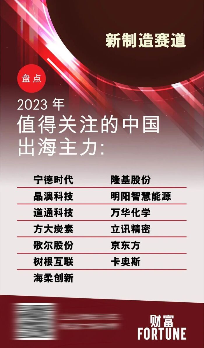 中国企业正在新制造、新能源与高端制造领域崛起,其中一批企业已经成长为细分领域巨头,未来有机会成为中国产品与装备出海的主力军。