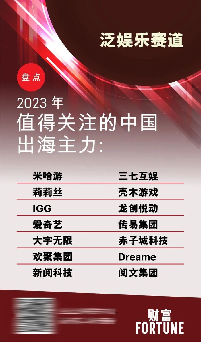 《财富》对2023年值得关注的出海企业进行了一次系统性盘点:在七个当下最热门的赛道,包括泛娱乐、电商、企业服务、医疗、新制造、智能硬件、汽车与汽车科技,选取那些不断开拓新领域、取得新突破、影响力与日俱增的企业。它们当中,有聚焦新赛道的企业,或稳扎稳打,将国内的产品优势因地制宜地带到国外,或在成立之日就锚定海外市场,“出道即出海”;也有传统行业的企业,通过产品和商业模式的创新,在海外市场取得重大突破,也成为出海企业中不可忽视的力量。