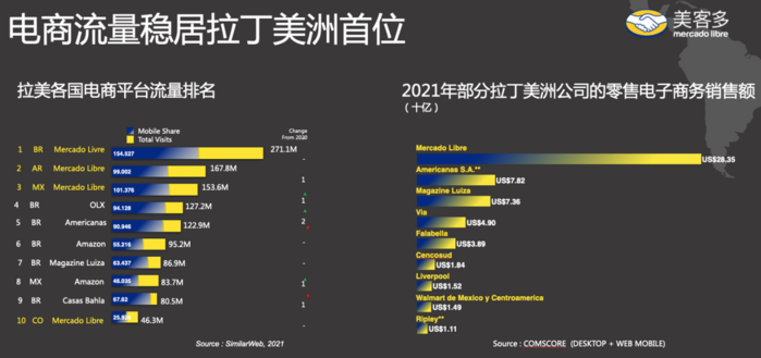 1.行业趋势:拉美电商增速20.4%,市场容量从4870亿到8290亿美金增长,互联网普及率低(56%)驱动线上化,平台如美客多流量占50%以上。