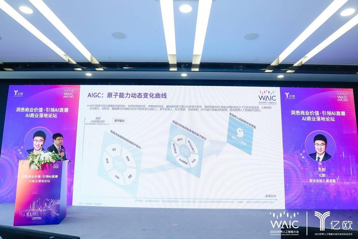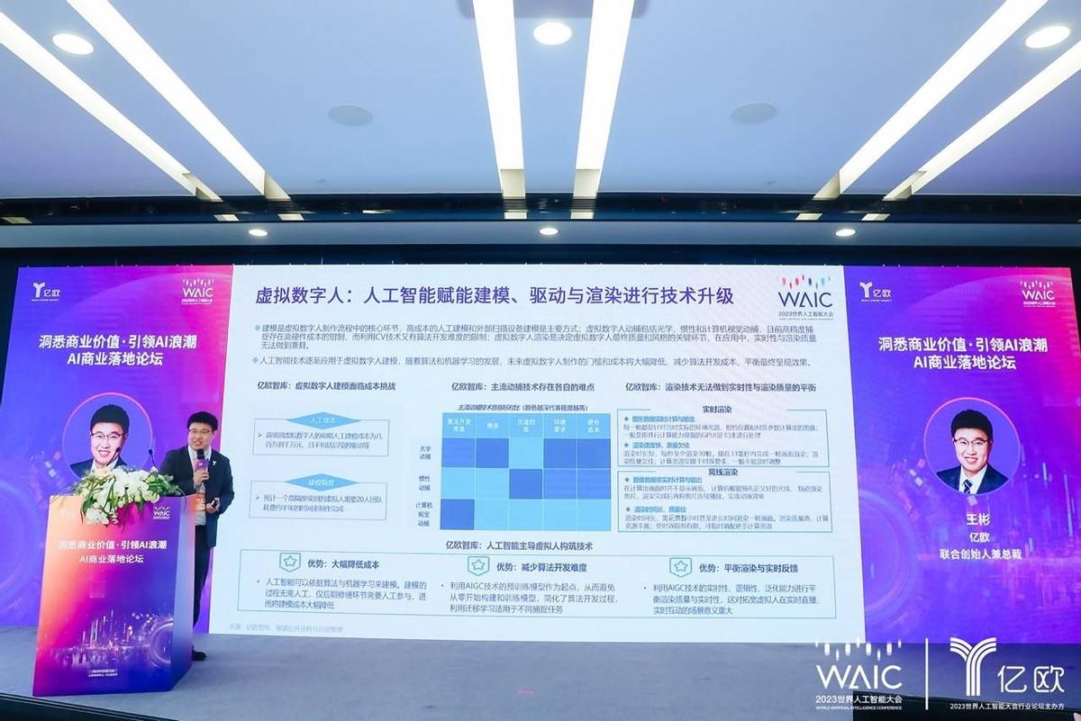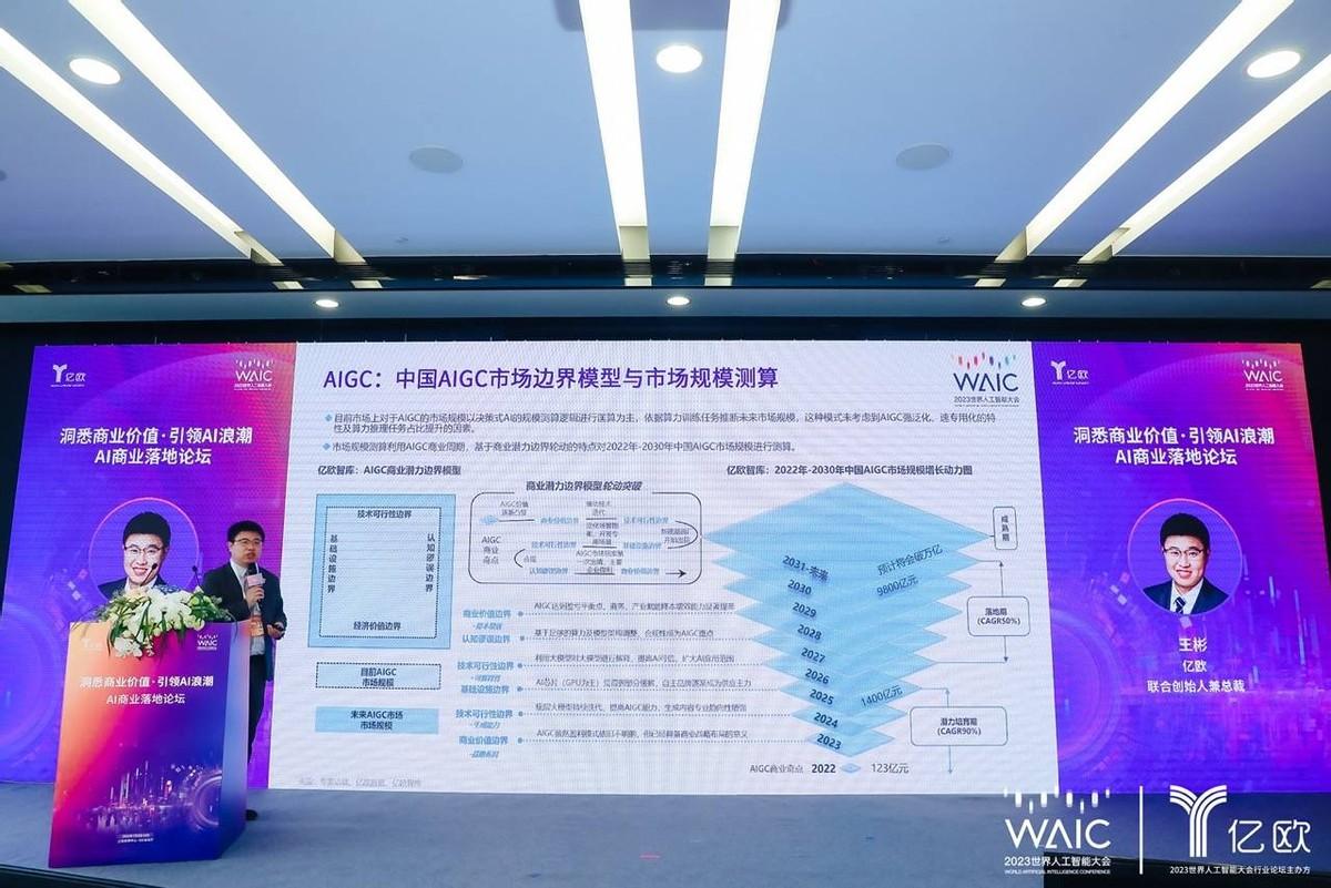 论坛上,亿欧联合创始人兼总裁王彬博士发布了《中国AI商业落地投资价值报告》《中国AIGC商业潜力研究报告》《中国虚拟数字人商业应用前景展望报告》三份报告。