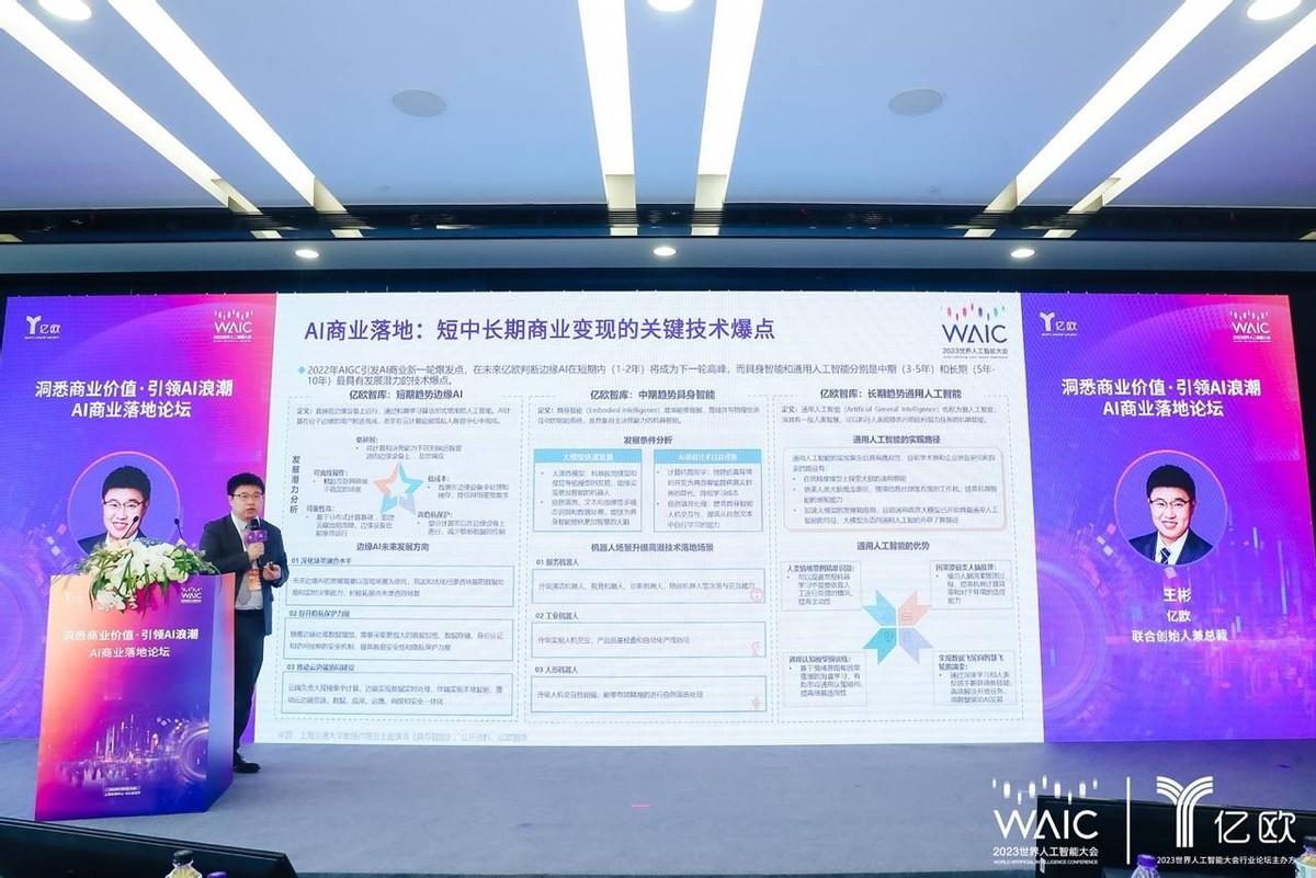 2023年7月8日上午,2023世界人工智能大会“AI商业落地论坛”成功举办。本次AI商业落地论坛由世界人工智能大会组委会办公室指导;亿欧主办;电通集团联合主办;中国信息通信研究院华东分院、上海同济大学校友会、上海新沪商联合会、上海市数商协会、上海市信息服务业行业协会、上海市人工智能行业协会、上海市工业互联网行业协会和上海金融信息行业协会共同协办。