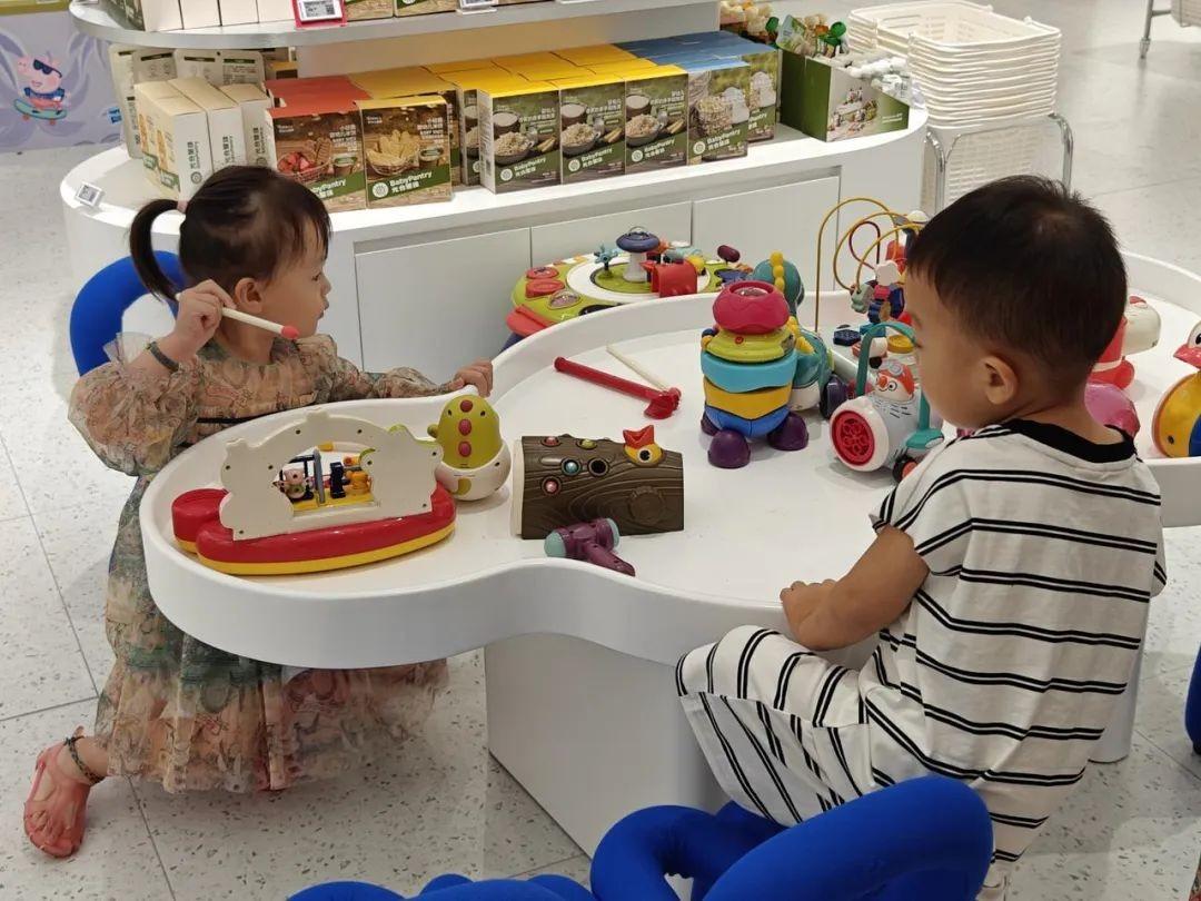 从分区来看,门店内不仅有常规的货品陈列区,还设置了玩具体验区。家长可以陪孩子一起体验,也可以把相对独立的小朋友安置在体验区,释放更多精力去挑选商品或稍作休息。