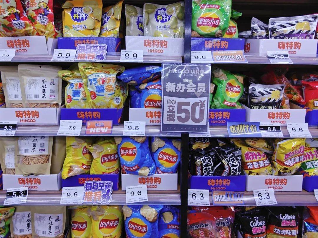 据介绍,嗨特购店里的进口食品占比大概在40%-50%,包括很多新奇的进口零食。“如果我们卖的都是通货,比如乐事薯片、农夫山泉,超市可以一站式购齐,那人们为什么要来这里买呢?”他告诉亿邦,为了让消费者持续获得新鲜感,嗨特购门店每个月会更换20%-30%的商品。