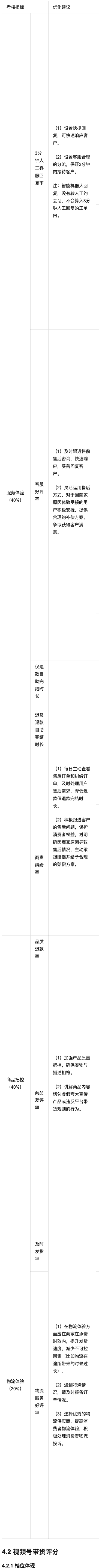 本次官方教程,释放出三大维度各自的详细指标,让好服务,好商品,好物流,都有数值化的明确标准。比如,商品体验的评分标准,与品质退款率、商品差评率有关。更多关键经营指标如下: