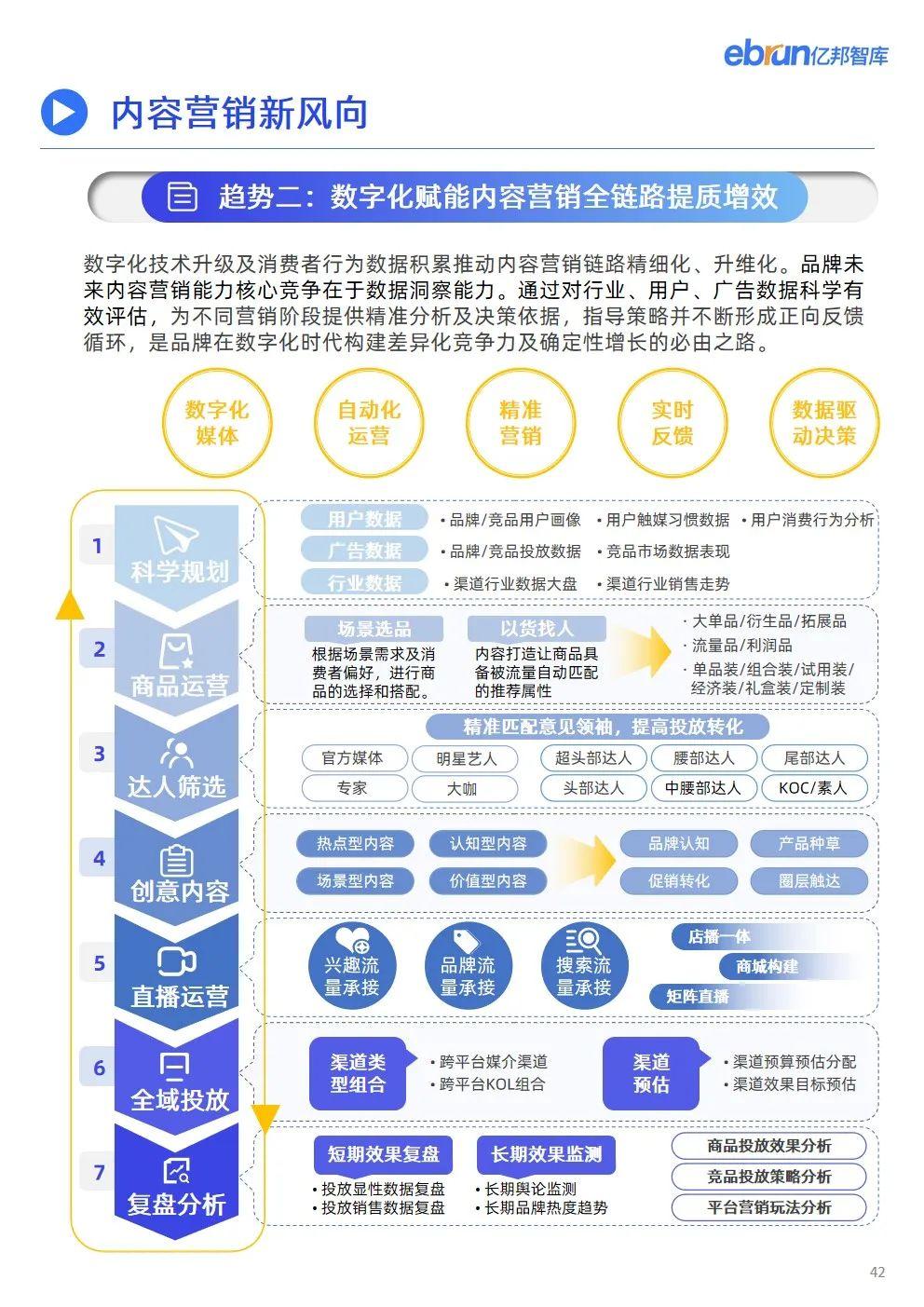 从行业趋势看,伴随平台多元分化的趋势及数字化技术升级,全域整合营销以及数字化营销已成为品牌长效经营必备能力。未来内容营销能力核心竞争在于数据洞察能力。通过对行业、用户、广告数据科学有效评估,为不同营销阶段提供精准分析及决策依据,指导策略并不断形成正向反馈循环,是品牌在数字化时代构建差异化竞争力及确定性增长的必由之路。