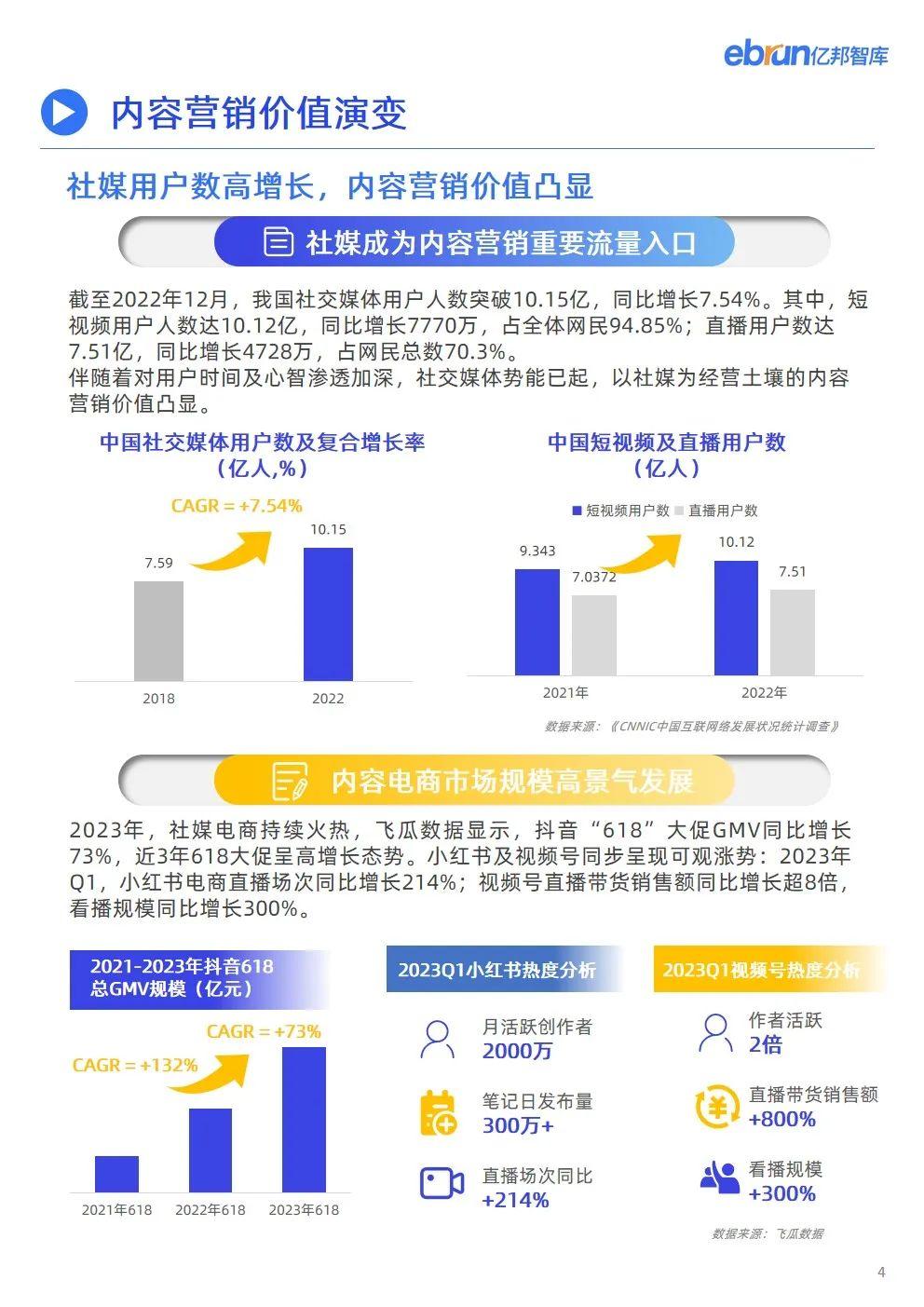 基于此,亿邦智库联合飞瓜数据发布《2023品牌内容营销发展洞察报告》,报告从内容营销行业演变、解密内容营销能力模型、标杆品牌案例解读、趋势研判4个角度输出行业洞察,希望给行业、品牌企业带来启发、思考。