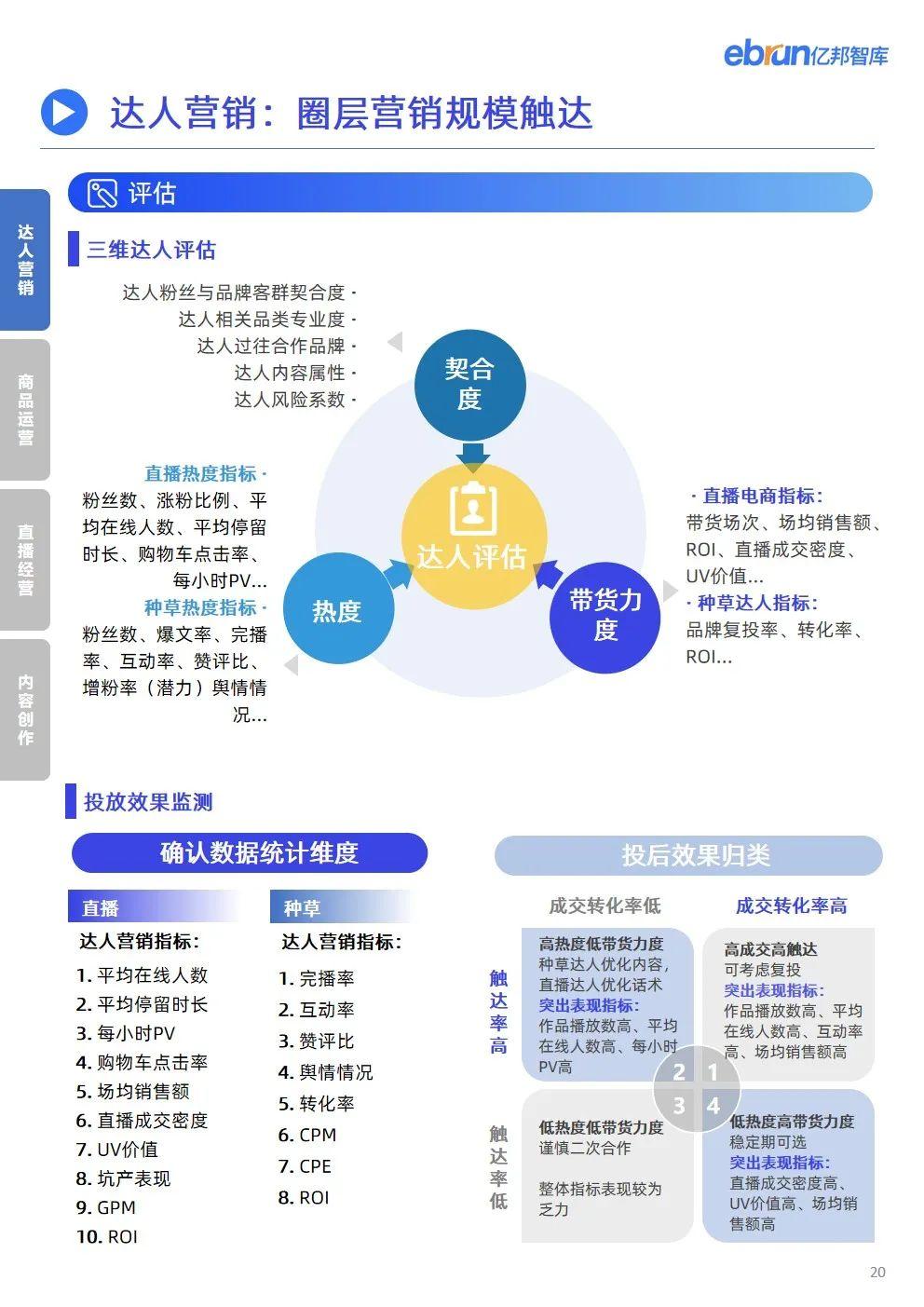 高增长的达人营销市场趋势下,达人营销正在成为品牌营销的必选项,甚至是首选项。达人营销能力底层逻辑需以终为始,通过对品牌特定受众圈层的精准圈定,科学规划并评估搭建达人合作体系,实现对目标受众的广泛触达及达人资产构建。