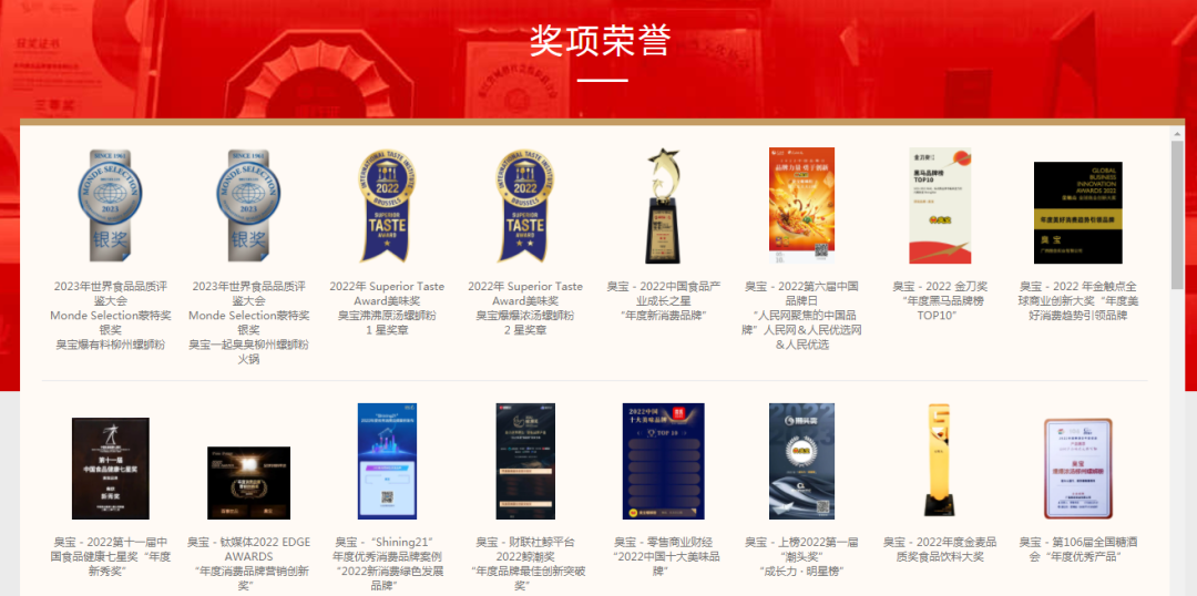 而在螺蛳粉赛道上,微念自主打造的螺蛳粉新品牌“臭宝”,在2022年销售占比增长到了35%-40%,并且荣获了多项荣誉,已经成为了微念的“第二增长曲线”。