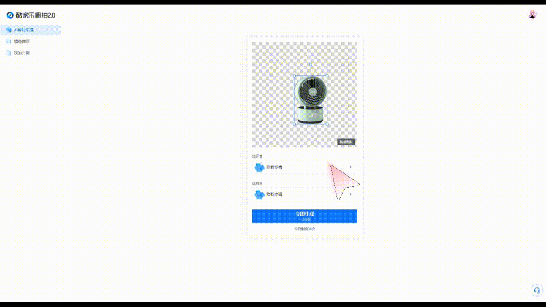 酷家乐也推出酷家乐棚拍2.0的AI棚拍功能,基于酷家乐独创3D渲染技术和海量素材,形成了一个人工智能商业拍摄平台。不用搭建场景,不用再抠图、构图、调整光影,只要上传一张产品图,AI自动抠图,并根据风格与元素选择自动生成多场景商品图。