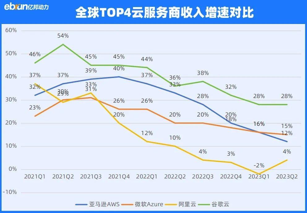 反观紧随其后的谷歌云仍保持近30%的增长,极有可能取代阿里云占据全球云厂商第三的位置。