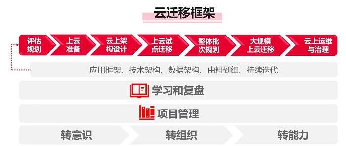 《白皮书》提出,企业上云应遵循先整体规划,然后小范围试点,最后再大规模上云的总体思路。上云全生命周期共分为调研分析、评估规划、上云准备、云上架构设计、上云迁移试点、整体批次规划、大规模上云迁移和云上运维与治理8个阶段。值得注意的是,在企业上云项目管理中,企业需要持续践行转意识、转组织、转能力,也要及时进行上云试点复盘、切换演练复盘、每批次迁移复盘等关键阶段的复盘。