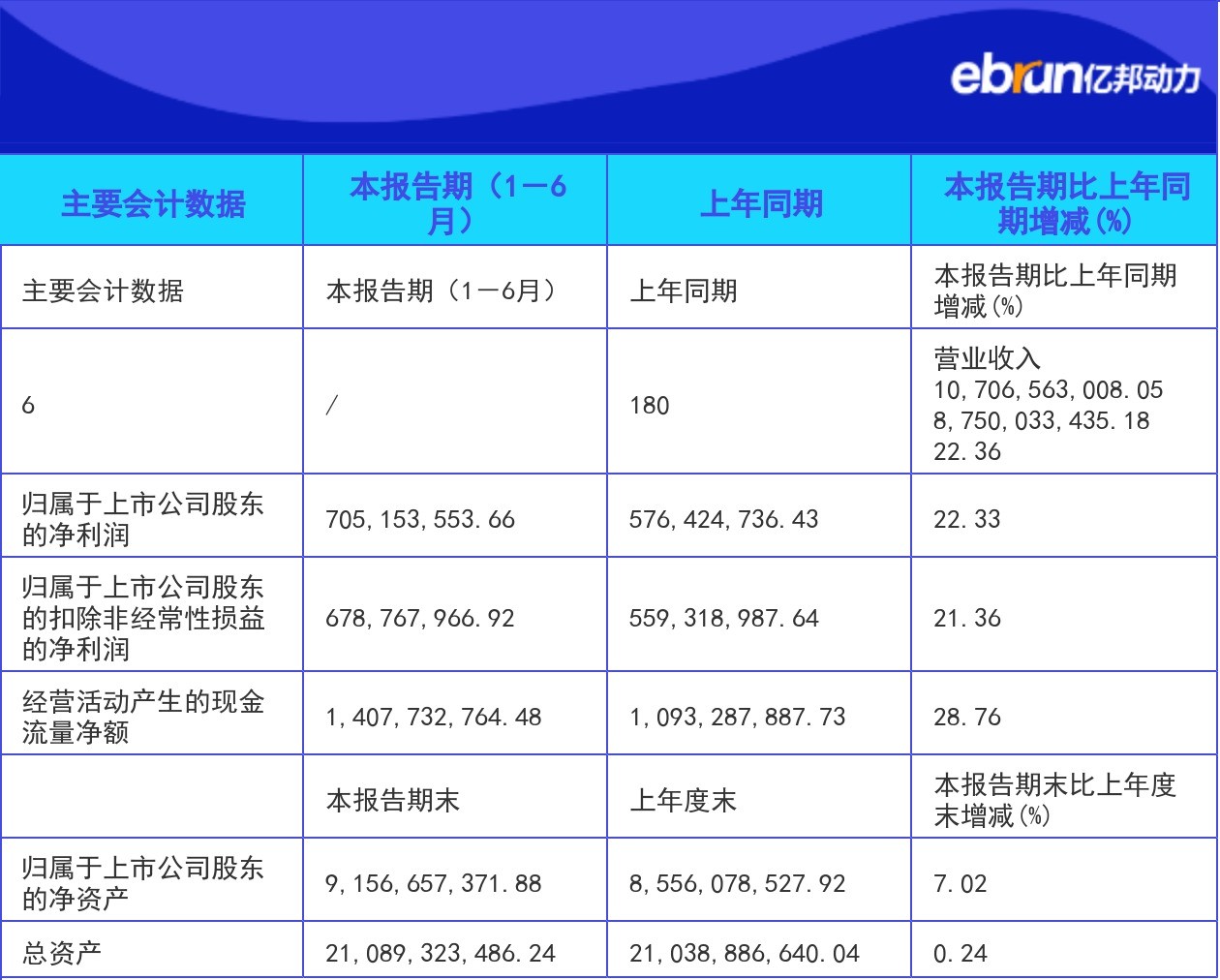 | 归属于上市公司股东的净利润 | 705,153,553.66 | 576,424,736.43 | 22.33 |