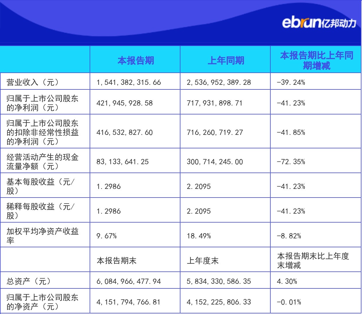 | 营业收入(元) | 1,541,382,315.66 | 2,536,952,389.28 | -39.24% |