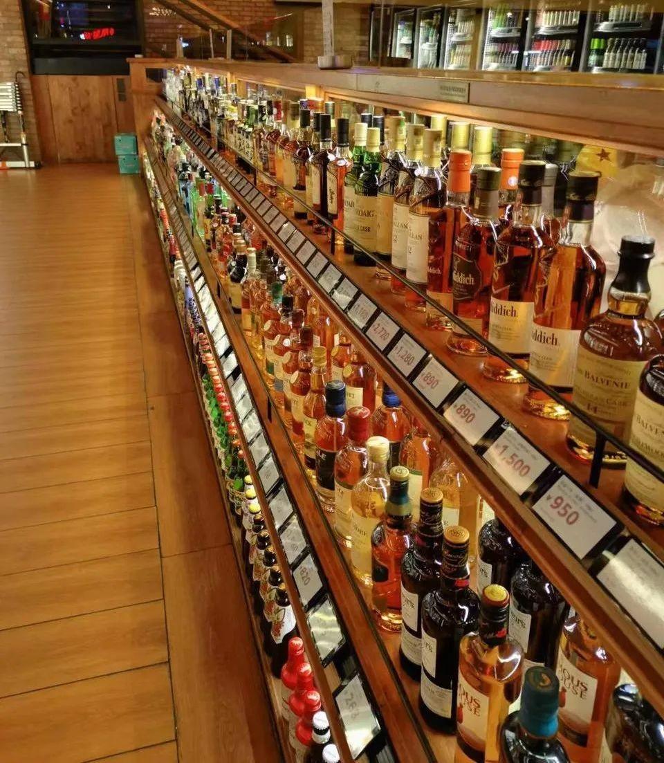 酒水自选区是一条长达20米左右的冰柜走廊,按照啤酒产地划分,覆盖了比利时、德国、美国和亚洲等国家和地区的酒水。其中,瓶装啤酒就有120多款,包括IPA、风味艾尔、酸啤、果啤等,红白葡萄酒有近120款。