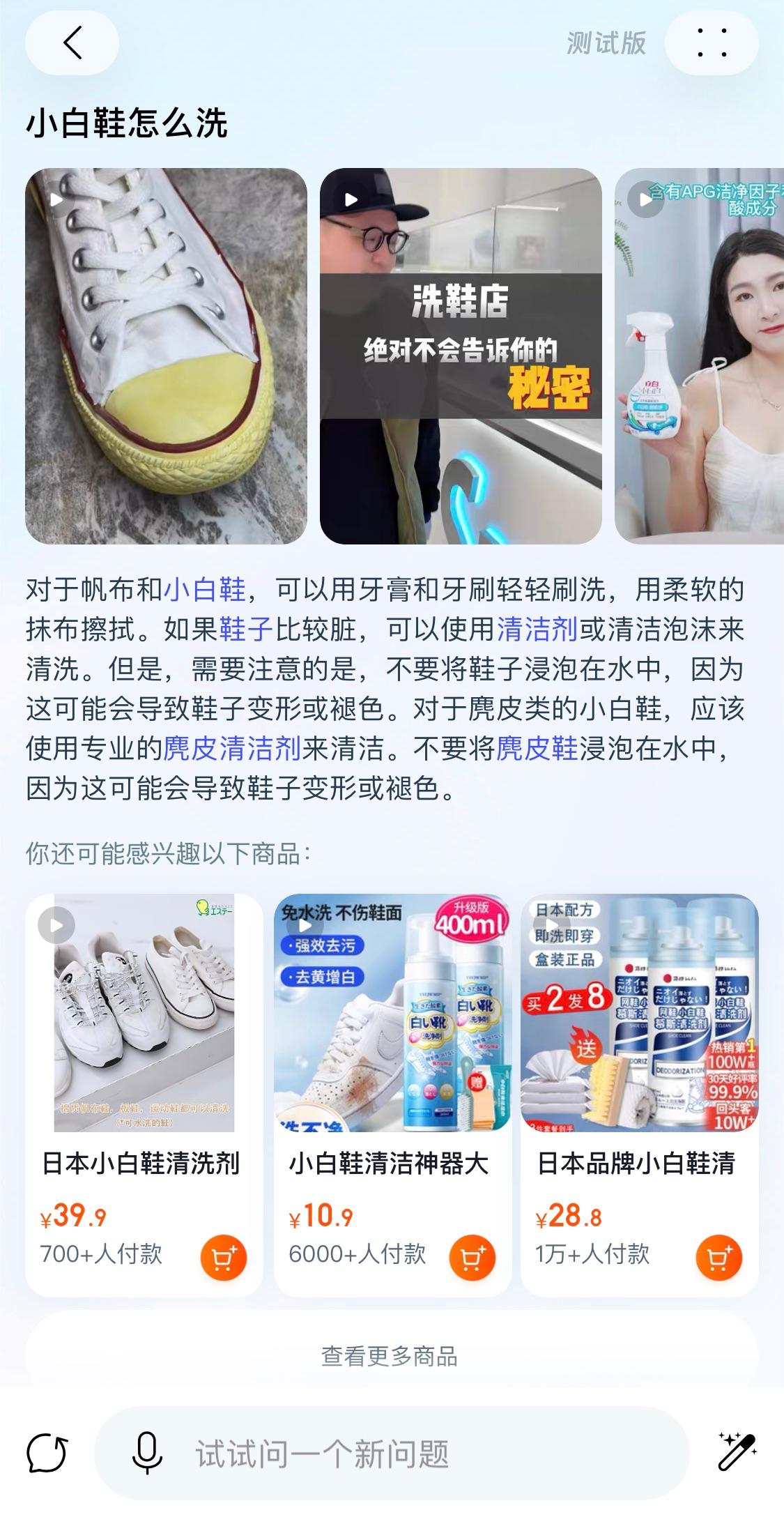 如果提问生活技巧相关问题,淘宝问问则会给出解决问题的方法,并直接在答案下方以商品卡片的方式,对可能需要的商品加以推荐。
