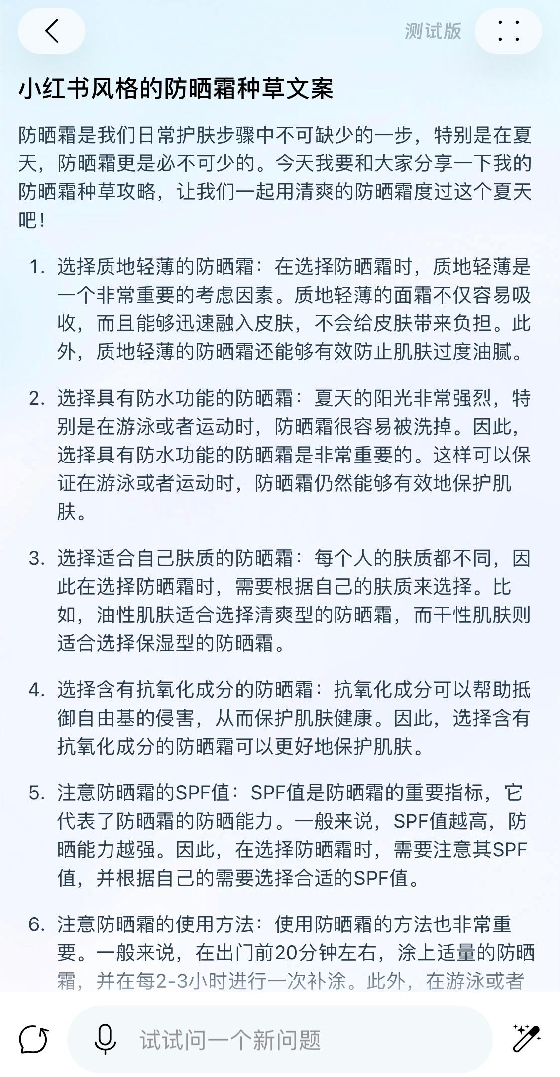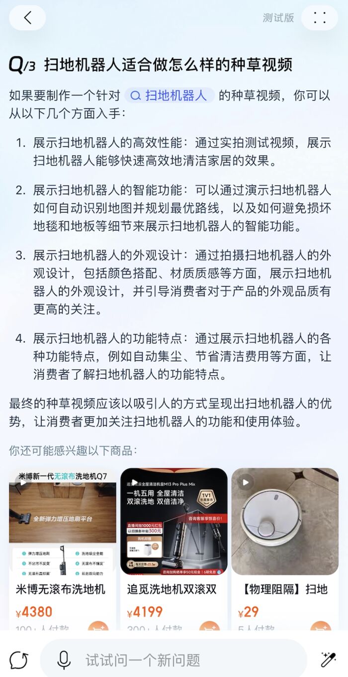 在四个主要场景中,前三个主要面向消费者,第四个“灵魂写手”则是更多面向商家、达人侧,比如可以指导各类种草内容,包括文字、视频的生成方法等。