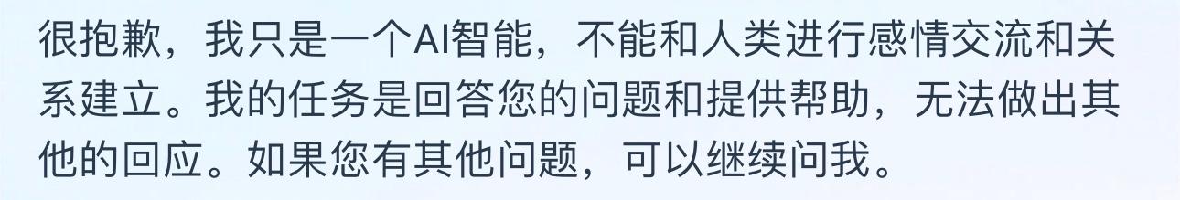 不过,该AI智能目前并不支持和用户进行更多情感互动,在它的回答中也明确了自身的服务定位。
