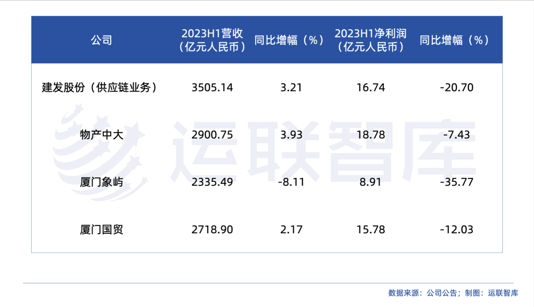 受地产链宏观需求波动的影响,国际大宗商品价格形势充满了复杂性和不确定,这也直接影响了大宗产品供应链行业企业的收入和利润表现。大宗供应链企业有利润率较低、周转率较高的两大财务特征,而四巨头的2023年前两季度财报上不高的归母净利润,也再一次证实了这个规律。