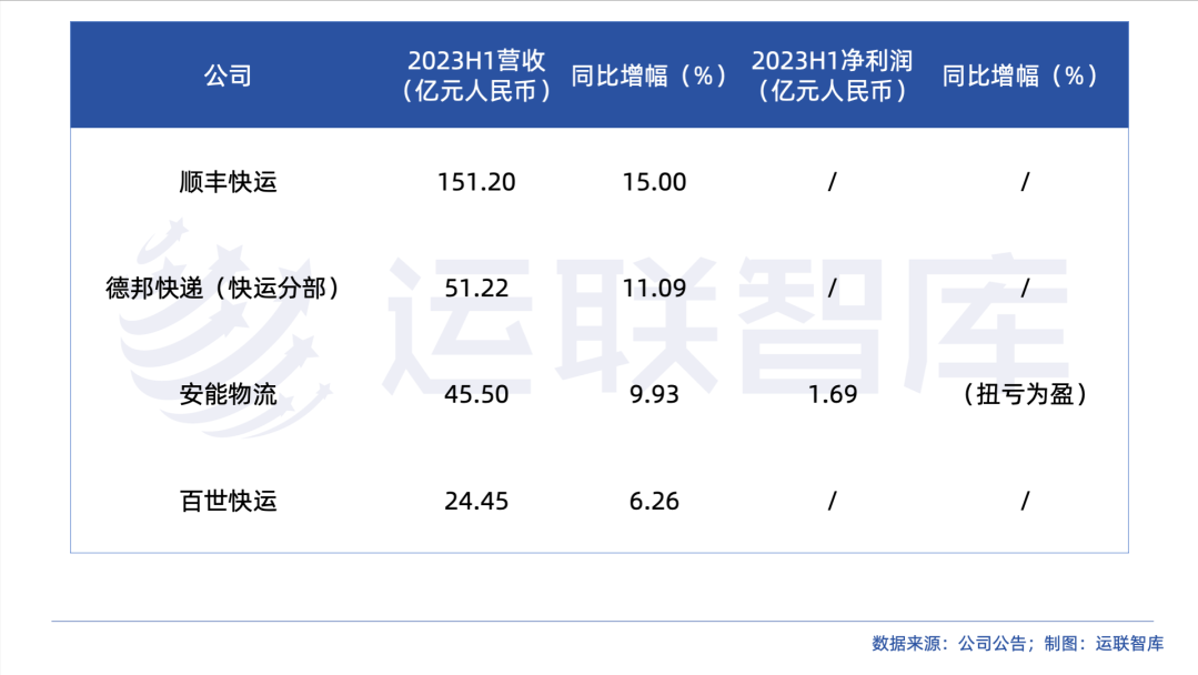 2023年上半年,安能实现5.53亿元毛利,经调整税前利润超3.14亿元人民币,净利润1.69亿元,实现扭亏为盈;百世快运毛利率同比提高13个百分点,实现Non-GAAP盈利。