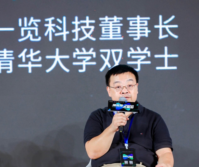与此同时,一览科技创始人兼CEO罗江春先生受邀出席大会,并与八友科技CEO梁斌、法海风控首席科学家肖进琦、「AI for Science」论论创始人兼CEO谈国禹等业内专家,就“从AI技术逻辑来谈,AI强应用VS AI大模型 谁对产业更重要?”相关话题展开了深入交流。