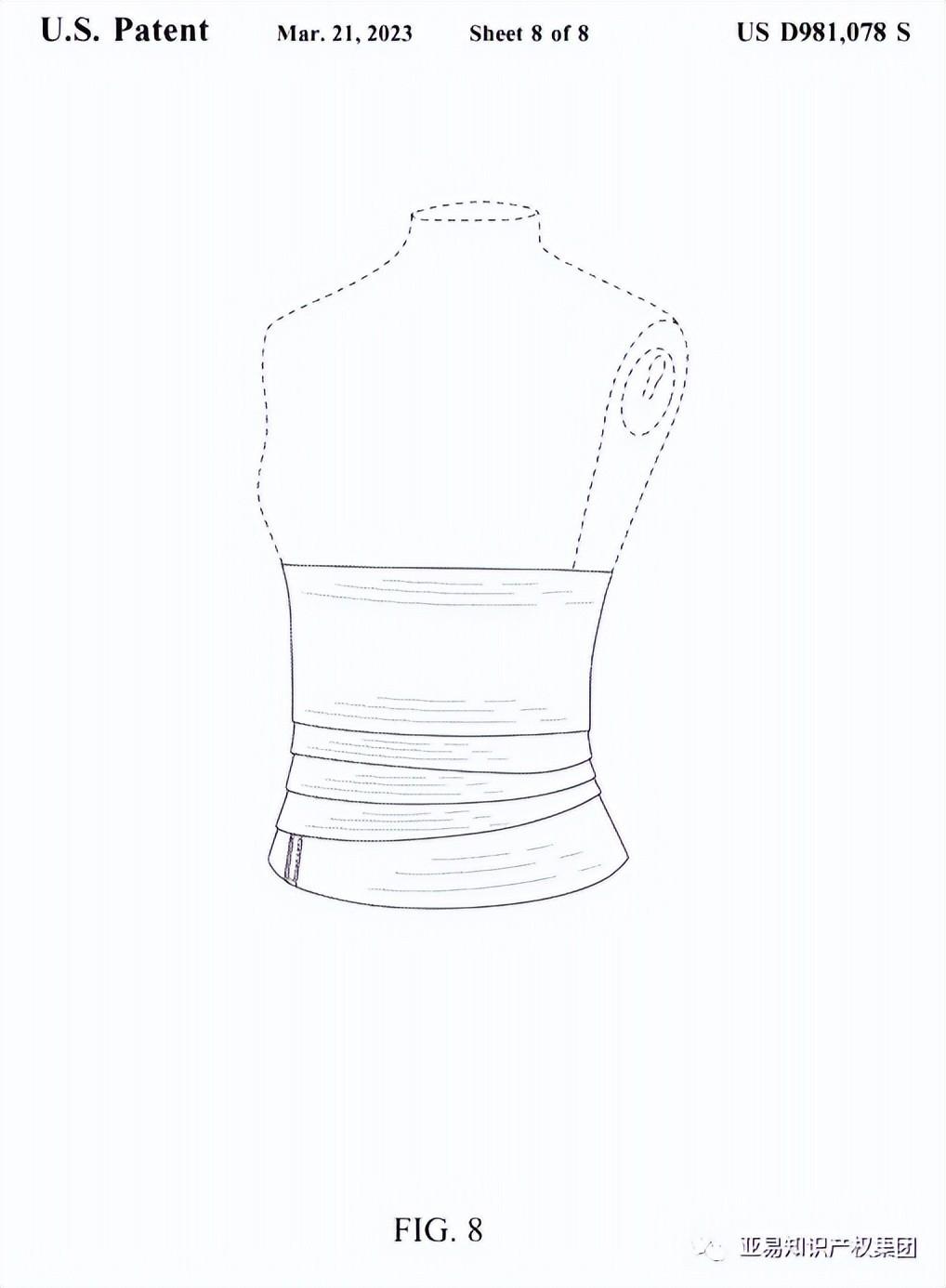 本次品牌针对“紧身束腰胸衣 Corset belt”的外观专利+版权进行维权,专利在2021年8月递交申请,今年3月获得美国专利局授权。另外品牌方还拥有图片及视频相关版权。