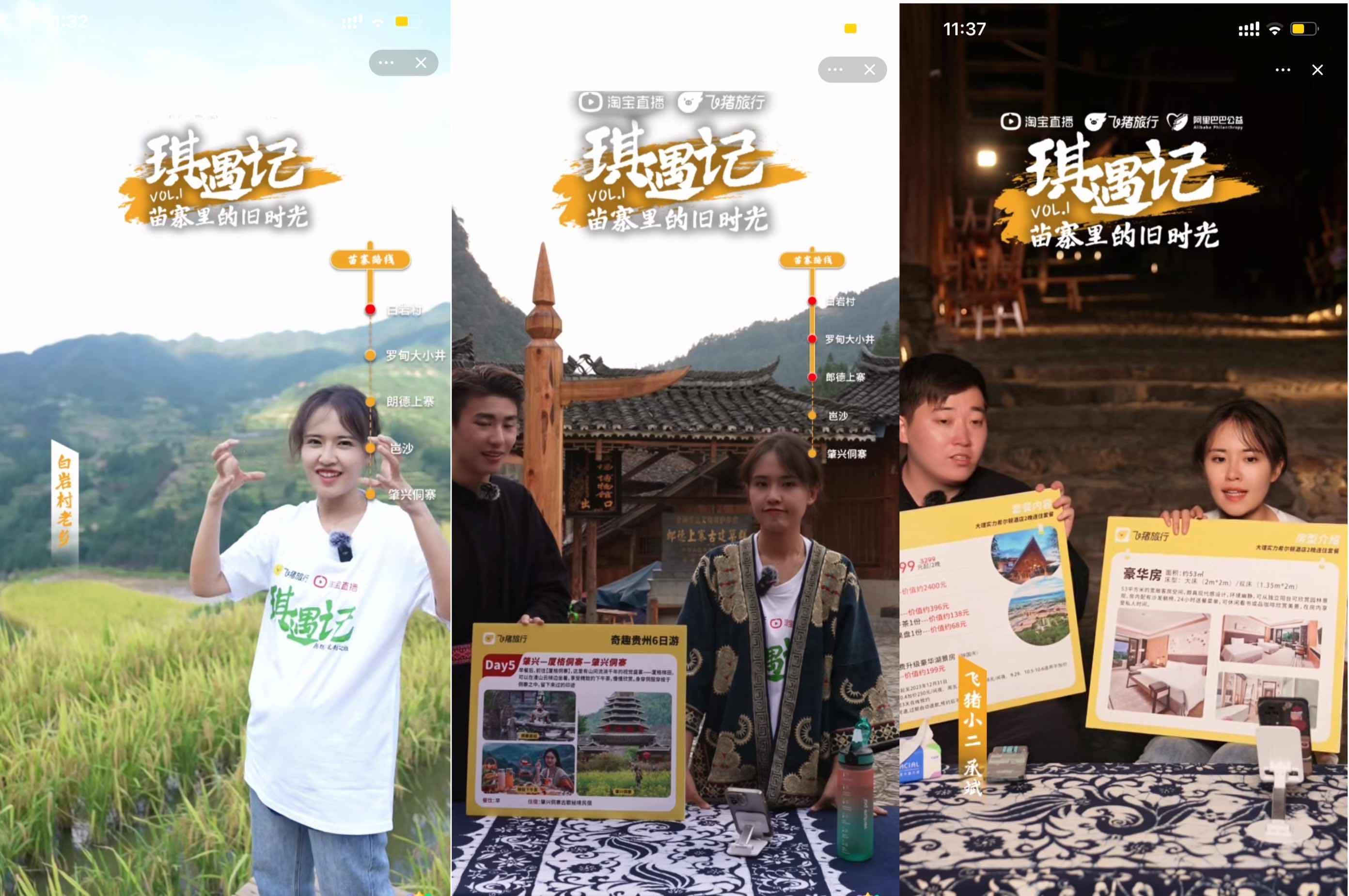 双11前夕,被誉为旅行“文案天花板”的抖音网红房琪加入淘宝直播大家庭,带领380万人领略苗寨风光。本次直播是淘宝直播联合飞猪一起探索的新直播模式,即小众定制游+本地生活探索为一体的直播新形式。