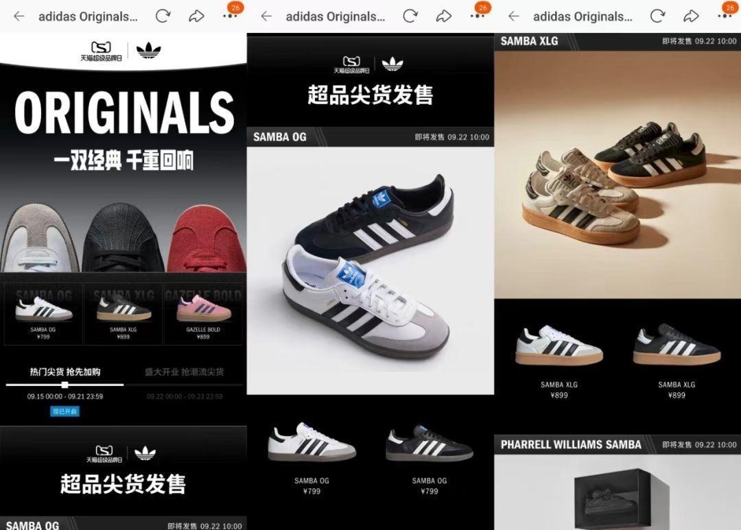 产品方面:adidas Originals主推产品为新发售的“SAMBA OG”、“SAMBA XLG”以及“GAZELLE BOLD”等系列鞋款。此外,“SUPERSTAR”等经典系列鞋款、运动短袖球衣、宽松运动裤等男女鞋服产品均参与超品日活动。
