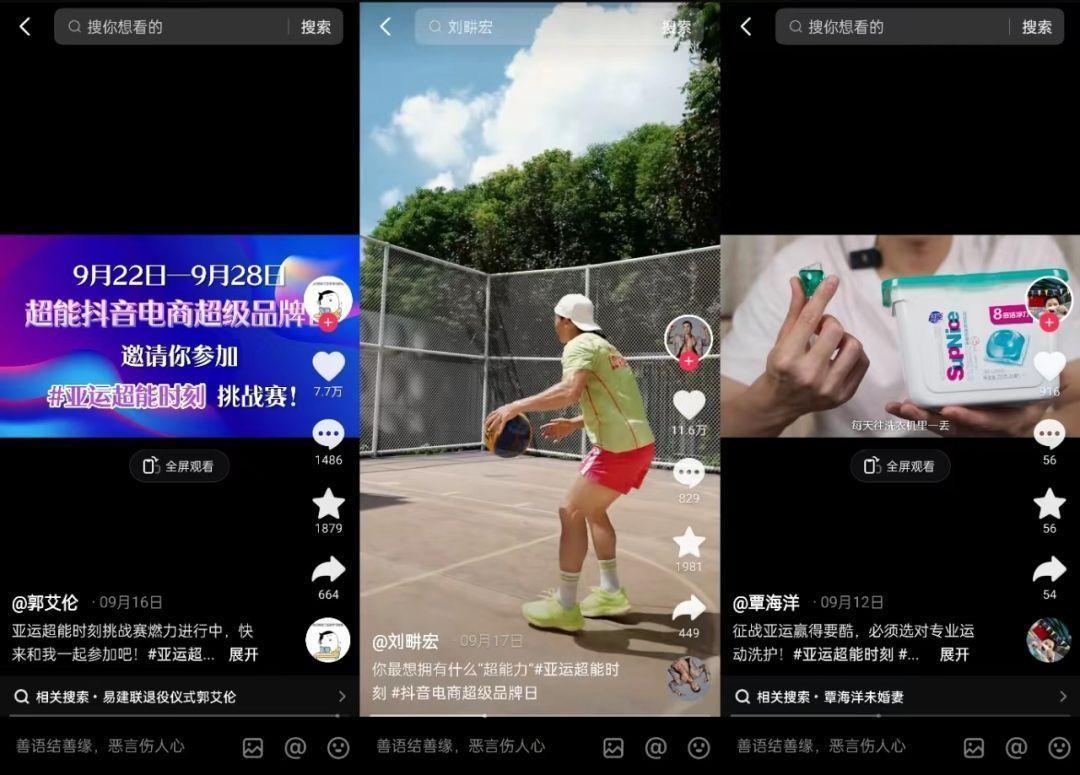 同时,品牌还通过上述体育明星或达人发起了“亚运超能时刻”挑战赛,以现金奖励瓜分的形式带动更多用户自发参与互动,进一步扩大活动的受众范围,拓宽品牌的用户群体,扩大了活动声量和影响力。