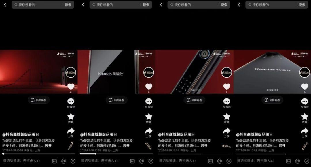 产品侧:本次凯迪仕抖音电商超品日活动主推产品为8月发布的新品“K70千里眼”智能锁。据悉,这款智能锁的外观设计灵感源于中式对称美学,前后面板尺寸一致,从而能够提供工整、平衡的视觉感知。屏幕经过了AF纳米材料镀膜处理,耐磨、防刮花。