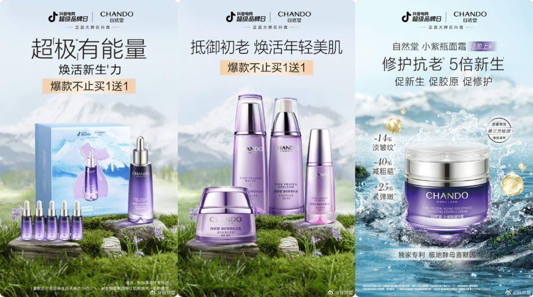 数据表现侧:据官方直播战报,自然堂官方旗舰店直播间登上9月9日直播带货榜抖音旗舰榜TOP1,并斩获美妆行业实时直播带货榜TOP3。活动期间,“自然堂种草喜马拉雅小紫瓶精华礼盒”在活动期间全部售罄,自然堂凝时套装登上护肤套装热卖榜TOP3,品牌会员拉新环比提升82%,品牌增粉环比提升227%。