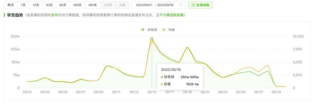 数据表现侧:刘涛出镜的全新品牌TVC喜欢量超过1.1万,飞瓜数据显示,凯迪仕开启超品日后,直播带货销售猛增,9月16日和18日两天销售额都达到100万至250万。