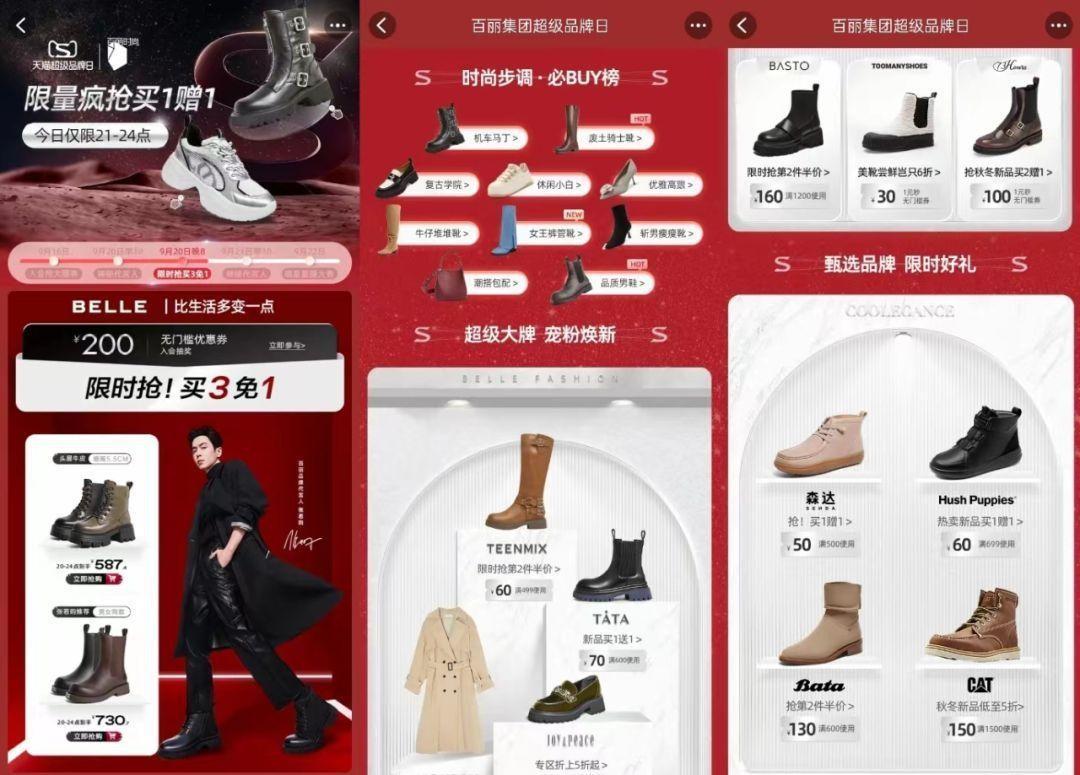 产品方面:切尔西靴、德比男鞋、牛皮马丁靴等张若昀同款鞋靴,20231秋季新款凹凹鞋、运动奶糕厚底小白鞋、奶皮靴、心愿结牛津鞋、德训鞋、定制细高跟女鞋、魔术贴星星童鞋等300多款鞋靴产品均参与本次超品日活动。