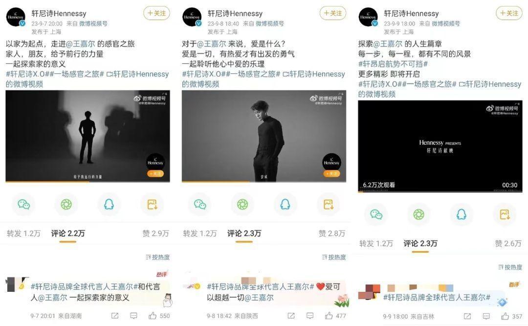 数据方面:截止到10月10日,轩尼诗超品日当天有王嘉尔和周冠宇出镜的的活动直播观看人次超过241万,获得了超过31万次喜欢,数据表现为9月最佳。同时,品牌在微博的主要传播话题“一场感官之旅”阅读量超过2.1亿,互动量超过523万,讨论量超过318万。