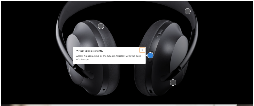 此外,高级A+还允许卖家添加:优质视频、图片轮播、高级图片背景、交互式热点、高级问答。下图为交互式热点的展示形式: