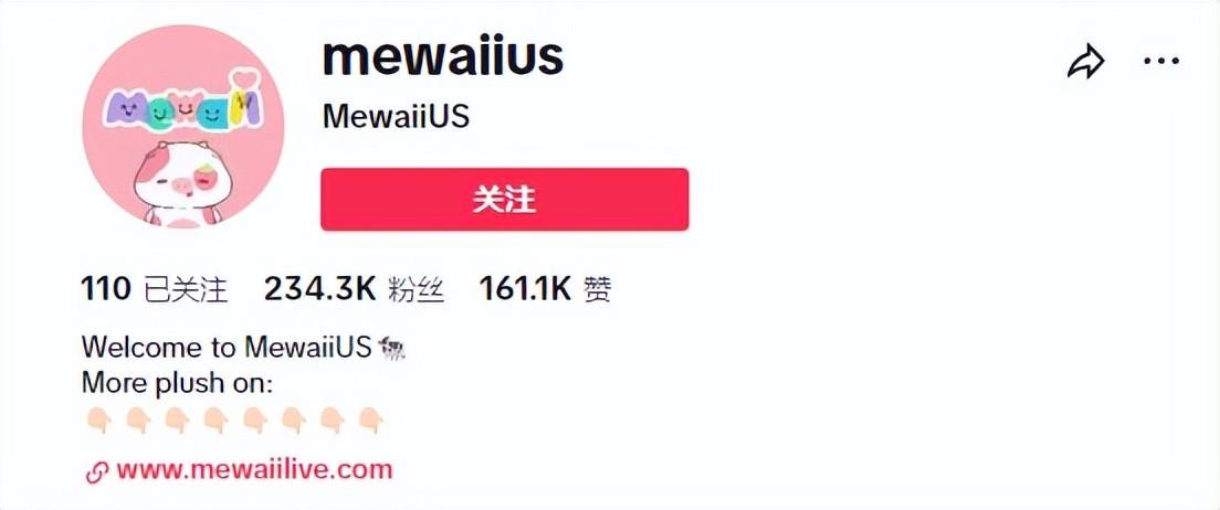 mewaii不仅在Instagram上拥有1.3万粉丝,而且在TikTok上获得了234.3K的粉丝,并且收获了161.1K点赞。