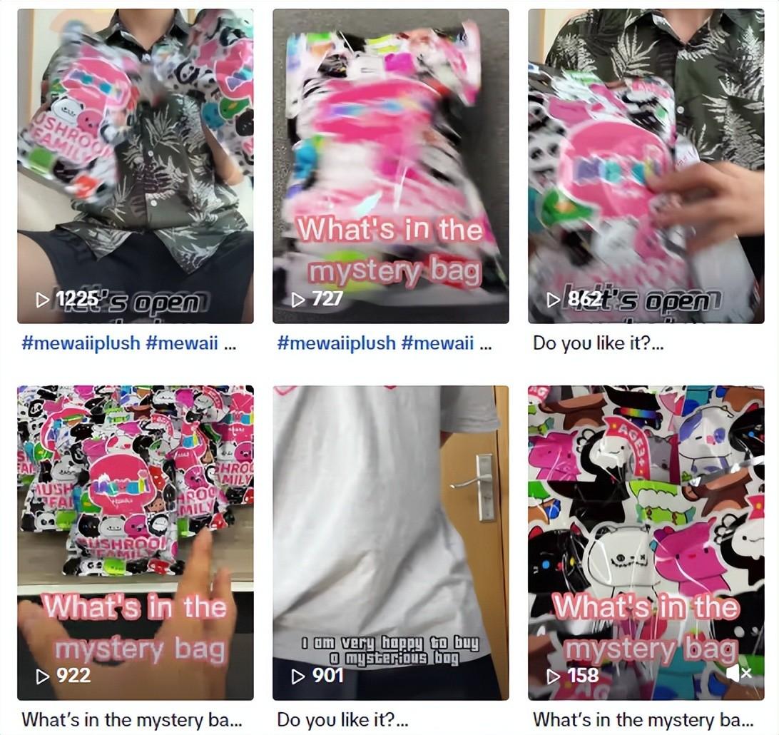 在店铺账号发布大量的带货视频,视频内容主要是以拆盲盒的形式展现商品,更新频率基本保持在每周更新2-3个视频。