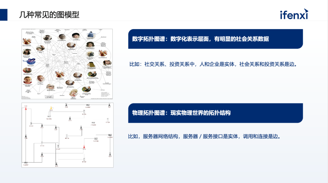 第三,特殊类型网络,比如网络结构。这是一种原生的top图谱结构,例如数字的top网络,人的社交关系、投资关系、资金的交易关系,以及物理的拓扑网络,如服务器的网络,这些都是我们常见的原始网络结构。