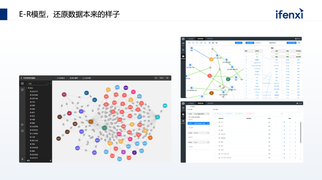 因此,我们有一套工具根据上述设计原则,将表结构抽象成一个图形结构。例如,我们在此处所看到的图形结构实际上是对一个商品及其用户反馈需求反馈的一系列描述的知识结构。