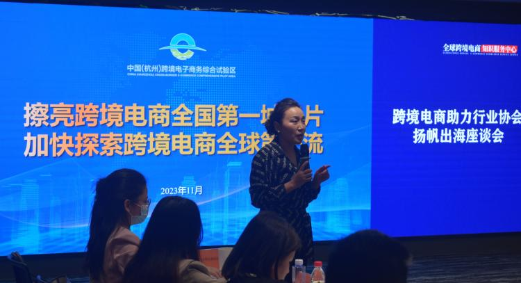 11月7日,跨境电商助力行业协会扬帆出海座谈会在全球跨境电商知识服务中心举行。杭州跨境电子商务协会、杭州企业品牌发展促进会(跨境百人会)、杭州市家具商会、杭州市服装行业协会、杭州市家用电器行业协会、杭州市婴童行业协会、杭州市城市照明行业协会、杭州市化妆品行业协会、杭州市体育休闲行业协会、东华链条、亿邦动力、宁波银行等协会和企业,以及阿里巴巴全球速卖通、阿里巴巴国际站、亚马逊全球开店、沃尔玛、谷歌、日本乐天、MTC Global等平台进行了深入交流。杭州市商务局总经济师武长虹,杭州市民政局副局长孙海鹏出席本次座谈会。