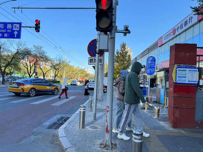 图说:北方街头,人们已经穿上了羽绒服