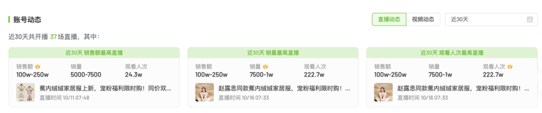 数据表现侧:品牌10月7日发布的《绒绒大作战》点赞量已经超过1.7万次,远超品牌其他内容数据。同时,品牌在微博的传播话题“赵露思被绒化了”阅读量超过1.3亿,互动量超过481万。飞瓜数据显示,10月16日超品日当天品牌直播间销售额达到了100万至250万,为近30天销售额最高直播,同时观看人次超过222万,也是近30天最高。