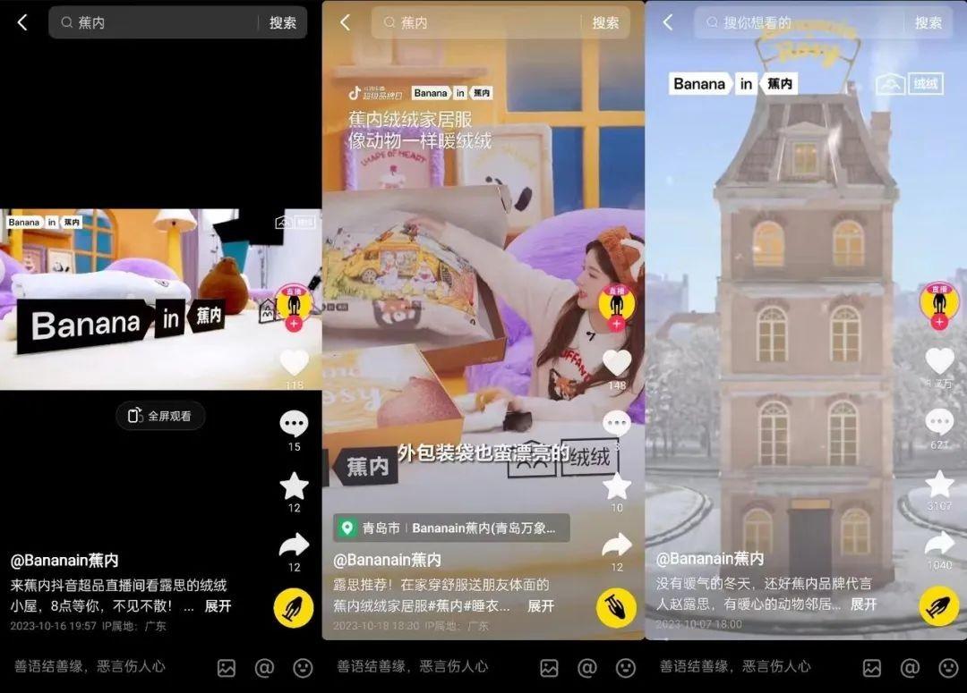 内容营销侧:蕉内在本次抖音电商超品日期间主要延续了去年“像动物一样暖绒绒”主题营销,并通过明星代言人赵露思进行了新的设计和表达。