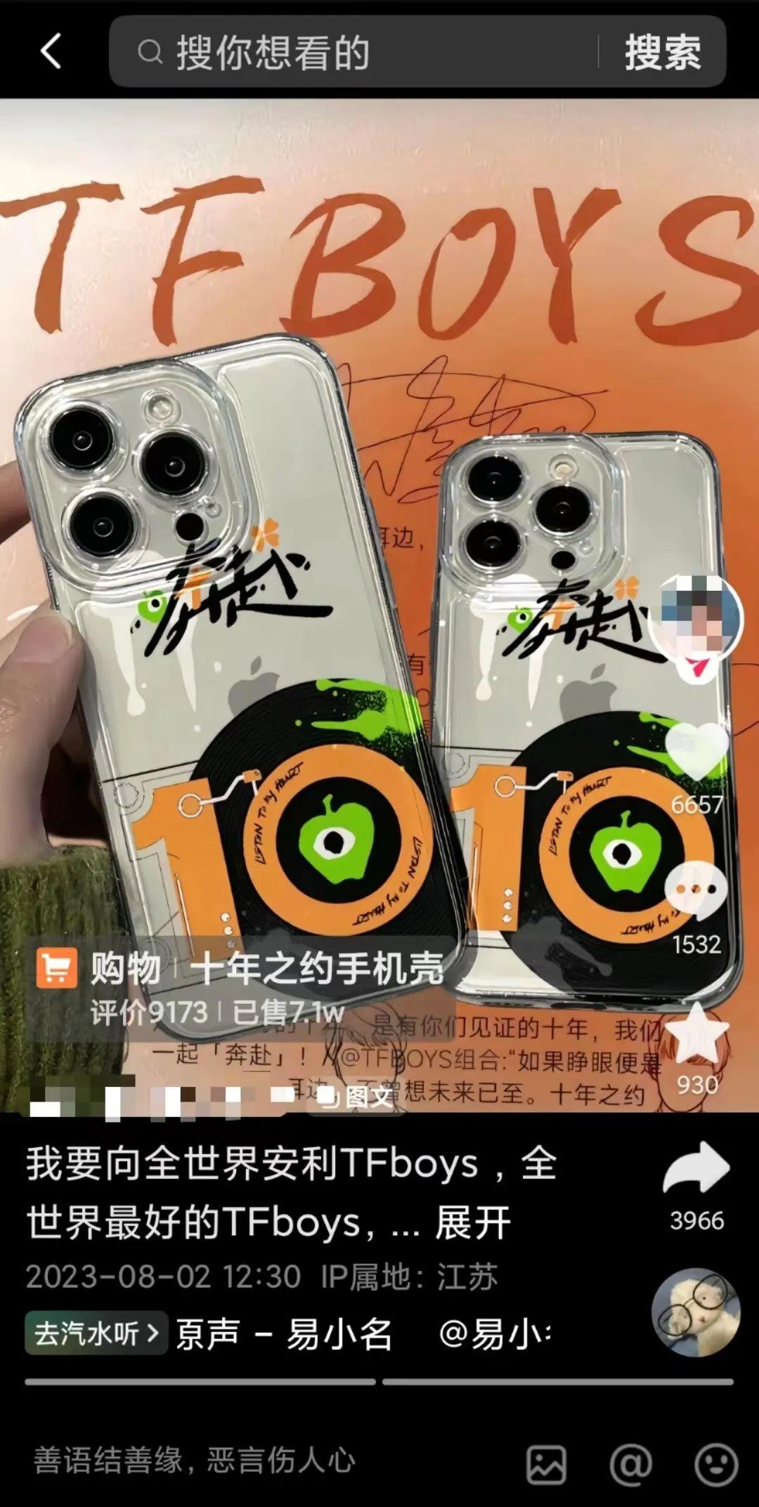 今年8月,TFBOYS举办十周年演唱会,成了抖音上最热门的娱乐话题。李阳带上多个TFBOYS的话题,附上一张买不到TFBOYS演唱会门票的聊天记录截图,还有一款十周年应援手机壳的图片,最后挂上小黄车链接。