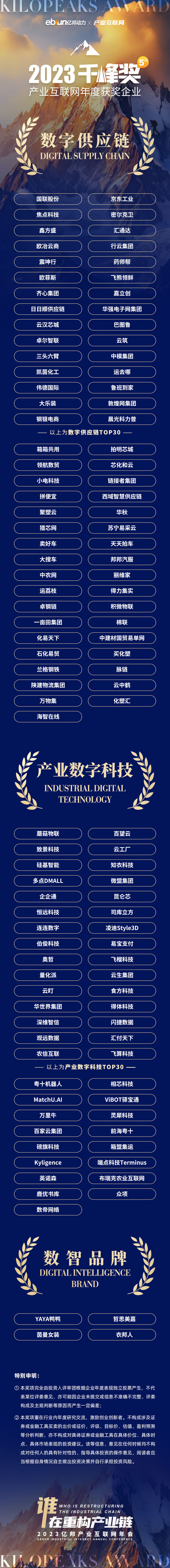 1. 奖项由亿邦动力设立,专业投资人独立投票评选具有市场成长价值的公司,强调产业数字化新模式新业态的分析评估。