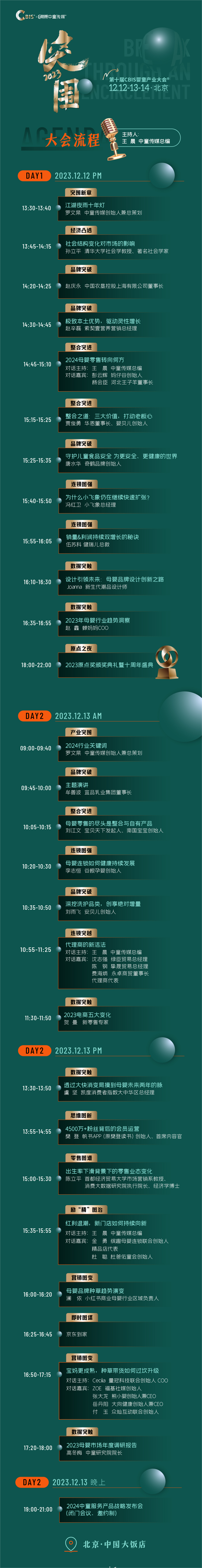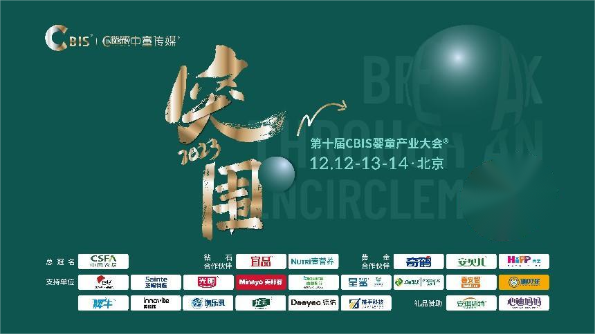 我们将在这场大会上,为大家解析突围之道——12月12日-13日-14日,由中童传媒主办,以“突围”为主题的2023第十届CBIS婴童产业大会,将在北京中国大饭店盛大举行。
