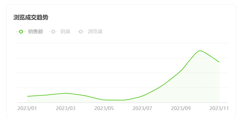 2023年1-11月抖音电商冲锋衣裤销售额成交趋势图