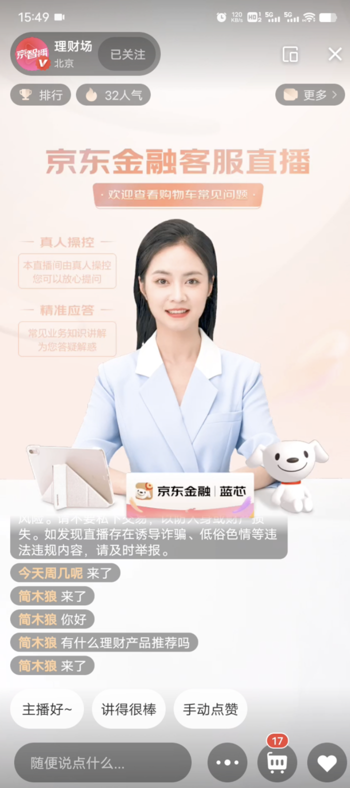 当进入京东金融App,客户每当碰到不明白的问题,数字人“蓝芯”、“蓝灵”都能够在线答疑解惑,以更人性化、高效率的方式帮助客户了解金融产品,甚至在直播间开了一门理财初级课程,进行科学的指导。不止如此,TA还可以跟客户进行深度交流,指导业务办理,给出针对性的回复和建议,真正做到了全天候在线与客户互动,提供主动服务。