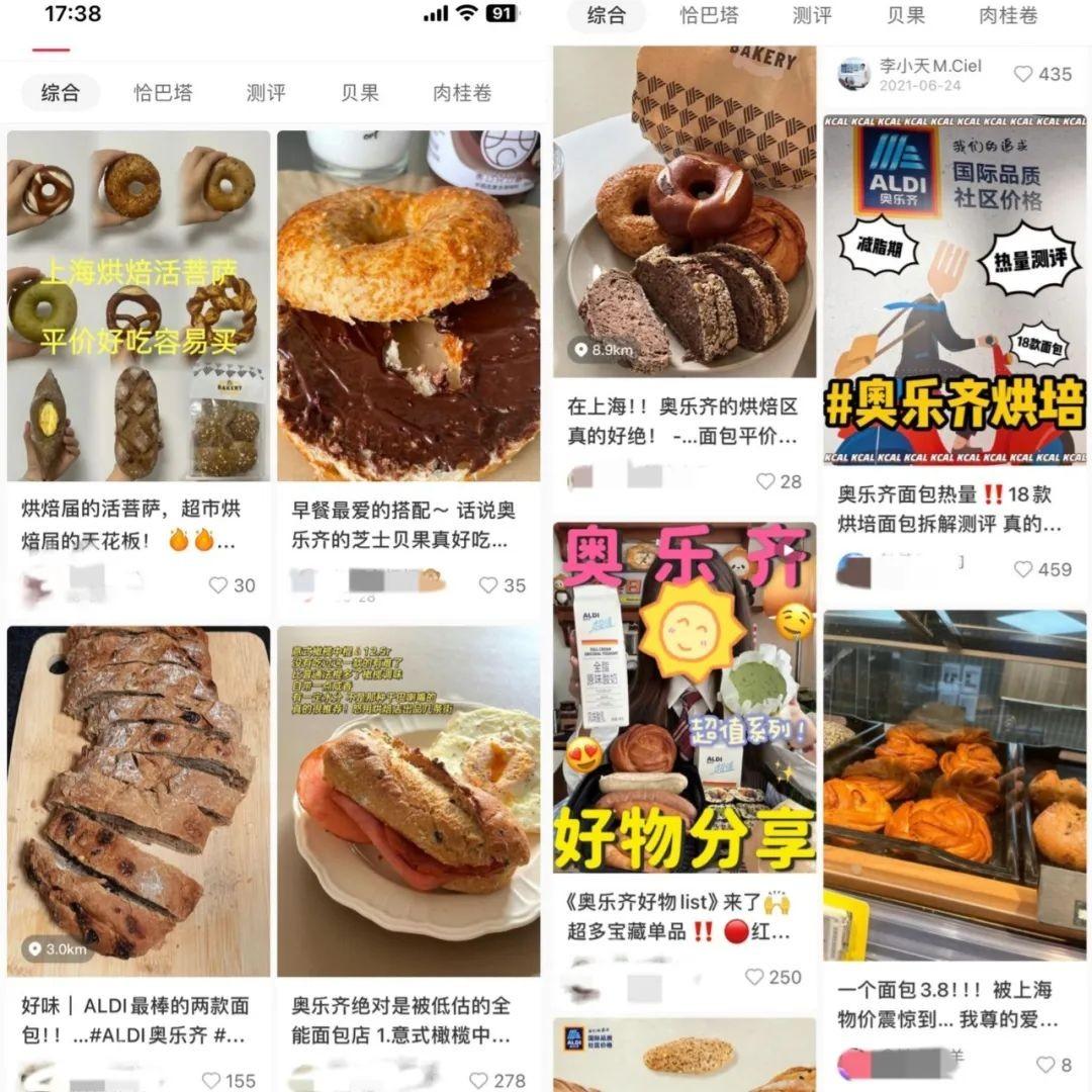 海外零售巨头深谙冷冻烘焙的优势,因此多用这类产品吸引顾客,打差异化的牌。奥乐齐的烘焙产品在入驻上海后拓宽了一倍,目前有40个左右的SKU,占全店的3%。烘焙产品是奥乐齐鲜食的招牌,在小红书等社交媒体上,网友们这样评价奥乐齐:“上海烘焙活菩萨,平价好吃容易买”“平价战神”。