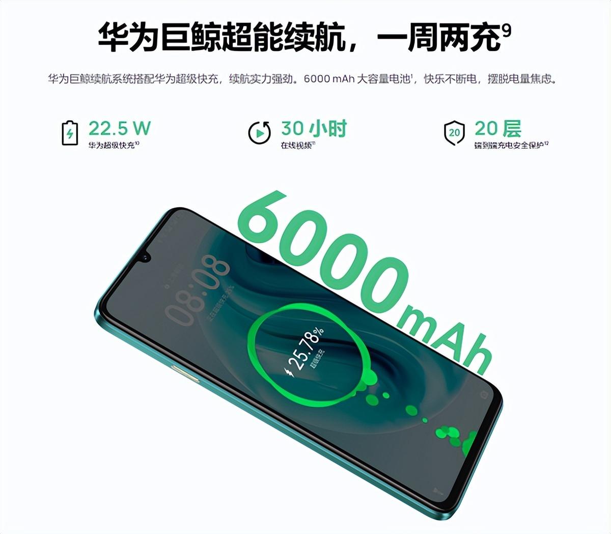 6000mAh华为巨鲸电池,一周两充,续航无忧